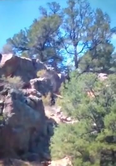 Suddenly, something moves in the corner of Kevin’s eye. Expecting to see the obvious Elk herd, Kevin turns to see his UNEXPECTED Life Changing Event. Towards the top of a Rocky Slope is a Tree and in that Tree there is a Massive Humanlike dark brown Figure just a few feet up. While focusing and trying to reconcile his brain with what his eyes are seeing, the Wind swirls and Kevin catches a scent of a strong, putrid, defecating Smell. What only could be described as a Bigfoot IS the Huge Figure in the tree and it’s pursuing a Porcupine!?! The Bigfoot then grabs the Porcupine, and as this happens, a smaller dark brown adolescent Bigfoot steps out from behind the brush below the Tree and is handed the Porcupine from the huge adult Bigfoot, who has now just stepped down from the Tree. The adolescent Bigfoot then takes a few steps down the slope and steps over a log.